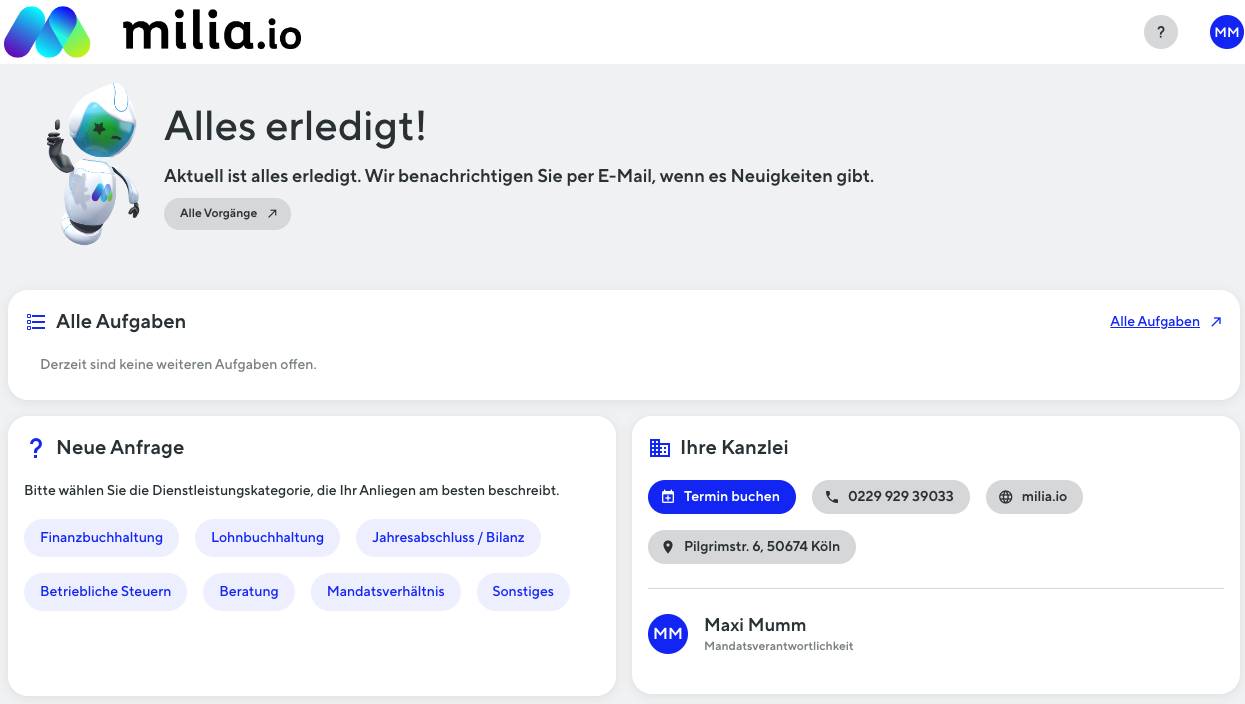 Arbeiten Sie flexibel von überall: Die Plattform ist sowohl im Browser als auch als App für iOS und Android verfügbar. Alle Ihre Dokumente, Aufgaben und die Kommunikation mit Ihrer Kanzlei – immer griffbereit.